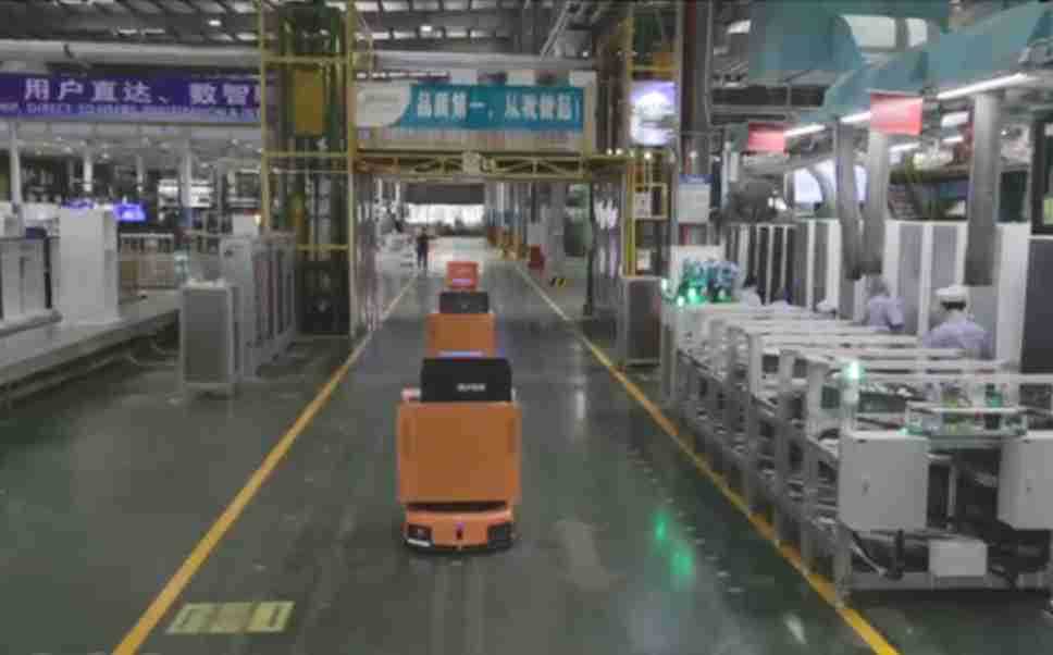 为车载冰箱物流配送打造的智能解决方案,,,,包含产中物流通过潜伏举升AMR搬运至线边,,,产后成品物流智能仓储,,,,流程包含产中物流智能齐套入库,,,,线边安灯叫料AMR智能配送至线边,,,成品入库、、、出库,,,,通过无人堆高车机器人,,,,智能仓储管理替代人工作业管理,,实现更高存储、、更高效率、、、、更具柔性化的解决方案。。。
