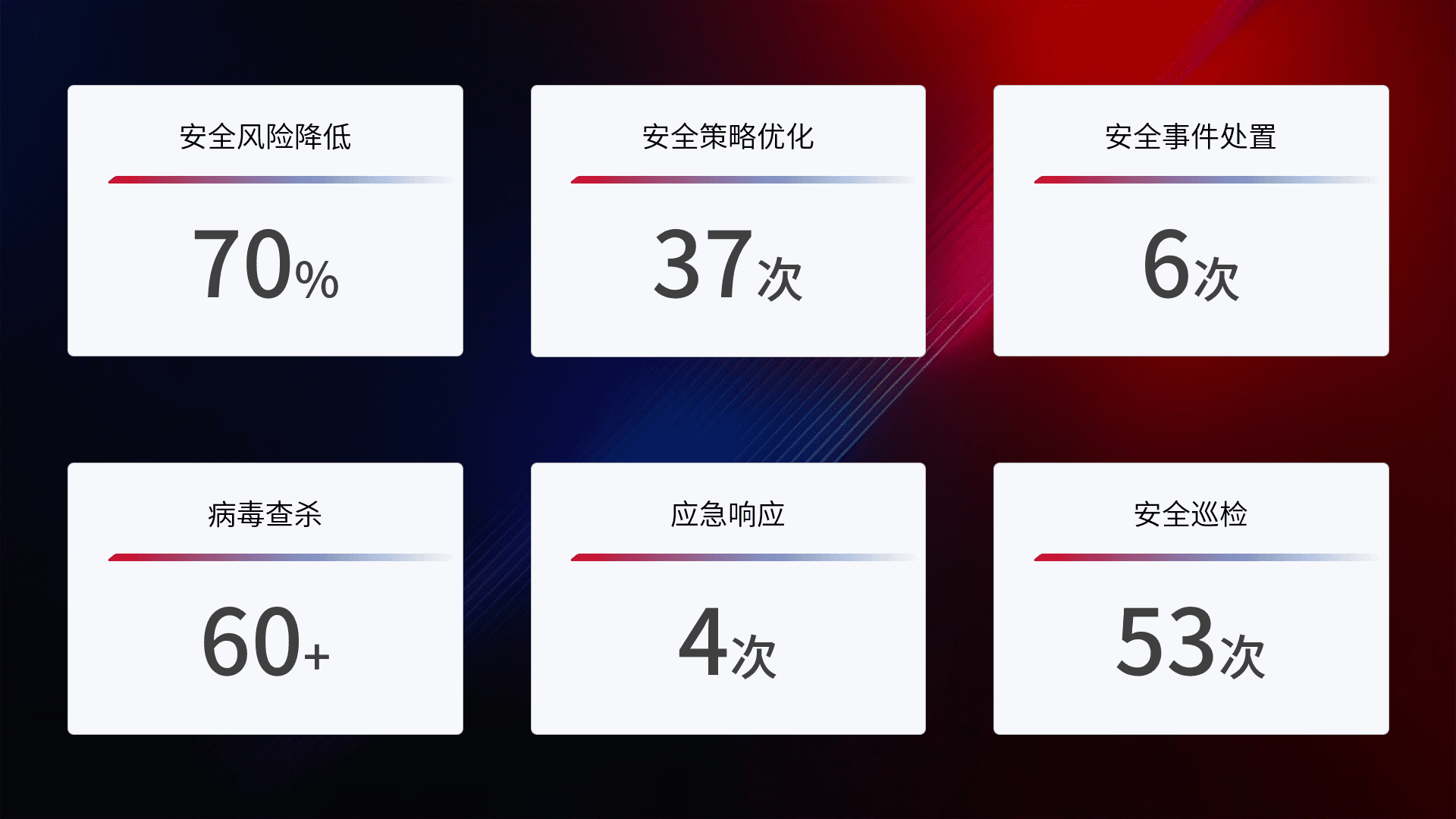 提供全面的安全事件报告体系,,包括处置报告、、、周报、、季度和年度总结,,,结合持续监控,,,,帮助客户深入了解网络安全状况。。。。